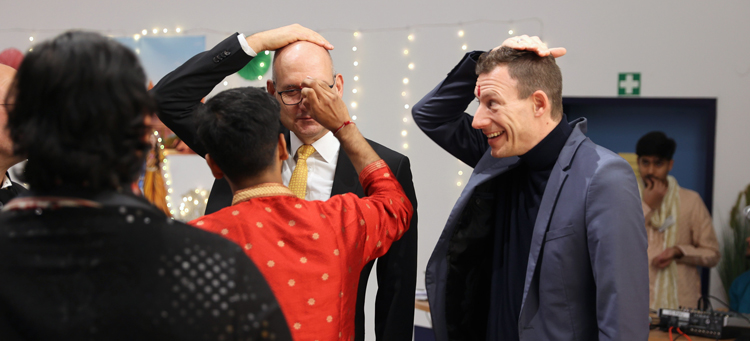An diesem Ritual beteiligten sich an der RWU auch die beiden Ehrengäste des diesjährigen Diwali-Festes, der Oberbürgermeister der Stadt Weingarten, Clemens Moll, und der Rektor der RWU, Professor Dr. Thomas Spägele. „Es ist schön zu sehen, dass die RWU so international aufgestellt ist und dieses internationale Flair in unsere Stadt bringt“, so der Oberbürgermeister.