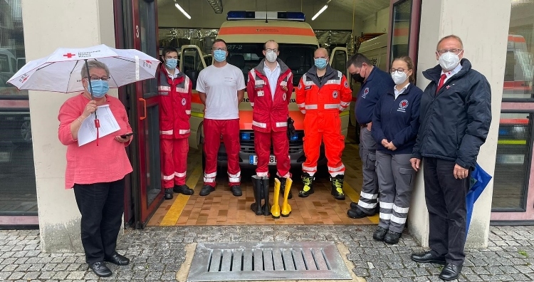 Vier Einsatzfahrzeuge des Katastrophenschutzes der Kategorie Krankentransportwagen der Hilfsorganisationen Deutsches Rotes Kreuz Kreisverband Ravensburg, DRK Kreisverband Wangen und der Johanniter Unfallhilfe Bodensee-Oberschwaben mit insgesamt 12 Einsatzkräften sind auf Marschbefehl des Innenministeriums als Dringlichkeitseinsatz zur Unterstützung bei der Unwetterlage in Rheinland-Pfalz ausgerückt.