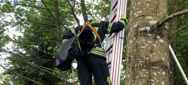 Am Dienstag 08:32 Uhr erfolgte die Alarmierung des Löschzugs Oberzell der Abt. Taldorf durch die Leitstelle Bodensee-Oberschwaben mit dem Stichwort „Tierrettung, Katze seit Tagen auf Baum“. Die besorgte Besitzerin der Katze, konnte den seit 3 Tagen vermissten Vierbeiner in einem Baum in einer Höhe von ca. 10 Meter, am Waldrand lokalisieren.