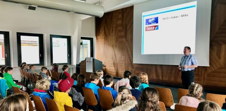 „Marken sind uralt“, sagte Michael Streich und machte einen Ausflug in die Geschichte. Er zeigte seiner jungen Hörerschaft Händlerzeichen aus dem 14. Jahrhundert und erzählte, dass die Steinmetze, die am Straßburger mitgebaut haben, dort ihre Markierung hinterließen. Es war spannend zu erfahren, wie heute gängige Markennamen entstanden sind. Für den Autonamen Mercedes stand ein Mädchen Pate, bei Klebestreifen Tesa eine Sekretärin bei der Firma Beiersdorf, namens Elsa Tesmer. Sie verwendete dafür die ersten zwei Buchstaben ihres Nachnamens und die letzten zwei ihres Vornamens. Dass „Milka“ eine Zusammensetzung der jeweils ersten zwei Buchstaben von Milch und Kakao ist, darauf kamen die Kinder selber. Auch „Hanuta“ wusste ein Junge zu entziffern, als Abkürzung von „Haselnusstafel“. Dass Nivea ursprünglich lateinisch ist und „Die Schneeweiße“ heißt, wer hätte das gedacht. Anders war das bei BMW, eine ganze Reihe Jungs wussten von ihrer Mutter oder ihrem Opa, dass dahinter „Bayrische Motoren Werke“ steht.