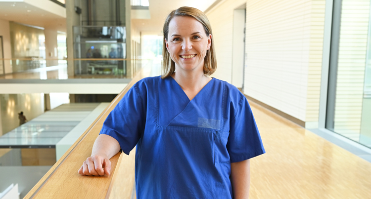 In der Klinik für Anästhesie gefällt ihr besonders die Abwechslung. „Wir bespielen alle Bereiche“, beschreibt sie. Besonders die Arbeit auf der Intensiv- und der IMC-Station liegt ihr am Herzen. Im Team fühlt sie sich sehr wohl.