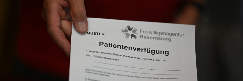 Die Freiwilligenagentur im Ravensburger Rathaus bietet, nun wieder in Präsenz, Informationen zu vorsorgenden Verfügungen, zu Betreuungs- und Patientenverfügungen und zu Vorsorgevollmachten an.