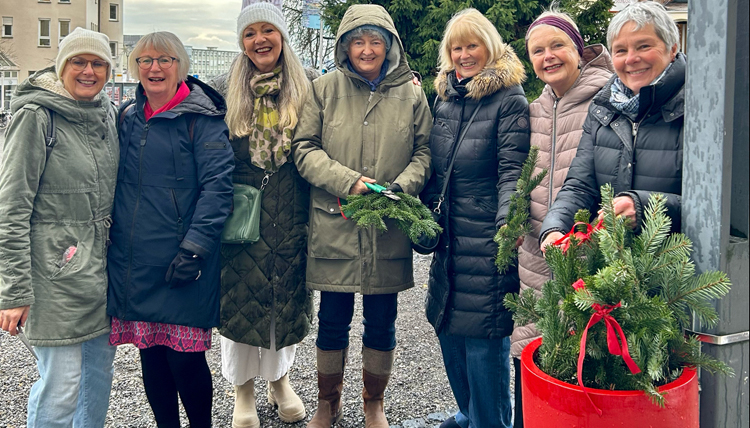 Die Stadtverschönerinnen von „Lebendiges Weingarten“ stimmen mit festlich geschmückten Kräuterkübeln in der Innenstadt auf Weihnachten ein. Adventliche Stimmung in der Fußgängerzone: Wo sonst Tee- und Küchenkräuter wachsen, steckt jetzt Reisig, verschönert mit dunkelroten Schleifen. Kurz vor dem ersten Advent haben die ehrenamtlich engagierten Frauen der Initiative „Lebendiges Weingarten“ ihre Kübel zwischen Münster- und Löwenplatz weihnachtlich dekoriert – eine hübsche Ergänzung zu den Lichterkugeln und Weihnachtsbäumen, die seit einigen Tagen abends leuchten.