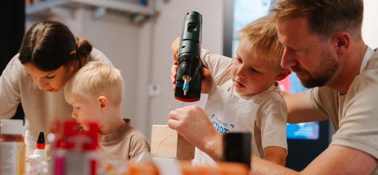 Die Workshops finden jeweils von 12:00 bis 13:30 Uhr sowie von 14:00 bis 15:30 Uhr statt. Unter Anleitung können die Kinder mit verschiedenen handwerklichen Geräten und bunten Farben ihrer Kreativität freien Lauf lassen.