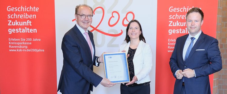 Kreissparkasse Ravensburg erhält IHK-Jubiläumsurkunde