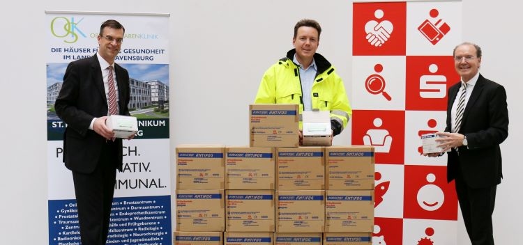 Aufgrund der Corona-Krise sind bei der Oberschwabenklinik die Vorräte an Schutzkleidung und Masken knapp und reichen nur noch für begrenzte Zeit. Die Kreissparkasse Ravensburg hat daraufhin beschlossen, dass aus dem eigenen Bestand an Mund-Nasen-Schutzmasken 5.000 Stück an die Oberschwabenklinik gegeben werden. Landrat Harald Sievers dankte der Kreissparkasse Ravensburg, „dass sie auch einen Teil dazu beiträgt, dass Ärzte und Pflegekräfte ihre Aufgaben auch in Zukunft ausreichend geschützt erfüllen können.“