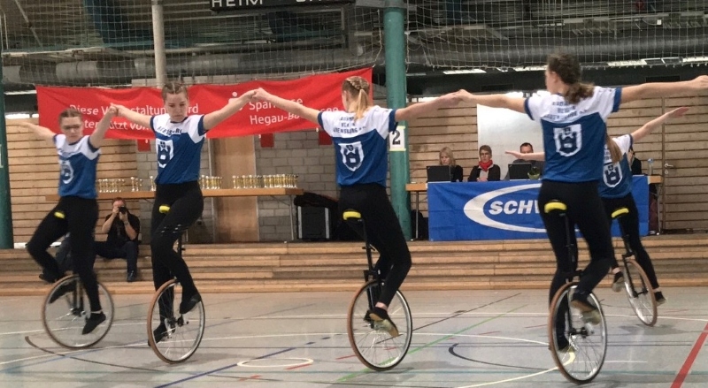 Die Sechser Einradmannschaft, ergänzt durch Saskia Braun und Sarah Gasser, erkämpfte sich neben den , Landesbesten aus Aach und Oberesslingen, den dritten Platz.