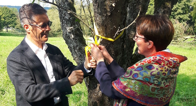 Der Landkreis Ravensburg setzt ein Zeichen gegen Lebensmittelverschwendung. Alle Eigentümerinnen und Eigentümer von Obstbäumen und Sträuchern, die mit der Ernte nicht hinterherkommen, werden eingeladen, diese mit einem gelben Band am Stamm zu markieren. Damit wird zum Ausdruck gebracht, dass das Obst kostenlos und ohne Rücksprache geerntet werden darf.