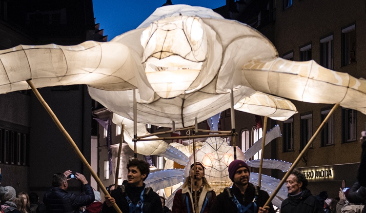 Das Lichterfest bringt Ravensburg in der kalten Jahreszeit zum Leuchten. Über Monate hinweg basteln Kulturinteressierte aus der ganzen Region in Workshops und der offenen Werkstatt im Kapuziner Kreativzentrum Laternen, Licht-Objekte und imposant leuchtende Großfiguren. Zum Abschluss des Lichterfest-Jahrs tragen die Teilnehmer:innen dann gemeinsam mit Schulklassen, Kindergärten und begeisterten Helfer:innen die entstandenen Objekte bei der großen Parade durch die Ravensburger Innenstadt. Das Leuchten der Figuren strahlt dabei tausendfach zurück aus den begeistert leuchtenden Augen der verzauberten Besucher:innen am Straßenrand.