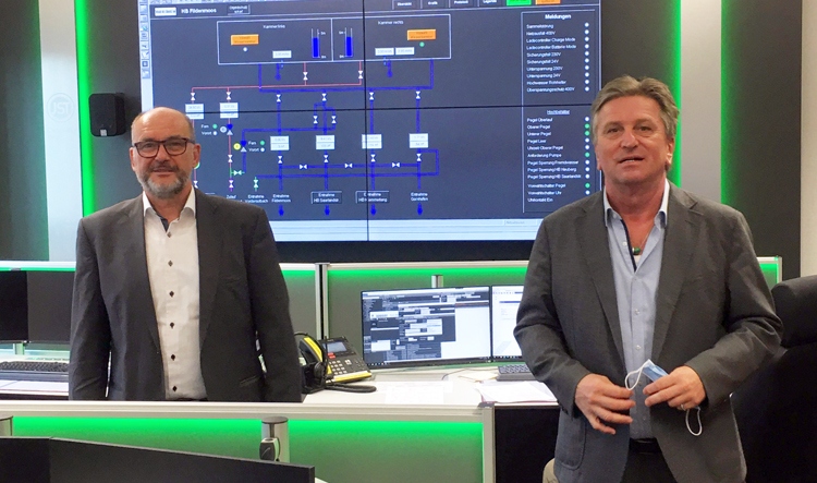 Thiel-Böhm informierte Lucha auch über die im Erweiterungsbau geplante Leitwarte, mit der sich „Gas, Wasser, Wärme, Strom und Mobilität“ steuern lassen. In der bestehenden Leitwarte zeigten die diensthabenden Techniker dem Abgeordneten, was derzeit schon möglich ist. So verbaut die TWS Sensoren direkt auf Wasserleitungen, die „straßengenaue Kleinst-Leckagen“ anzeigen und mithilfe Künstlicher Intelligenz immer genauer in der Problemanalyse werden. „Wir konnten den Wasserverlust seither stark verringern. Wenn wir ein Leitungsproblem haben, wissen wir darüber sehr genau Bescheid schon bevor wir einen Techniker rausschicken“, so Thiel-Böhm. Die Aufrüstung der Wasserversorgung mit Systemen selbstlernender Künstlicher Intelligenz führt auch dazu, dass weniger Wasser aus den Brunnen entnommen werden muss.