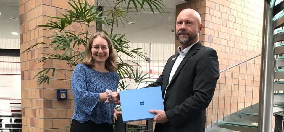 Bei dieser onlinebasierten Kundenbefragung hatte man auch die Chance tolle Sachpreise zu gewinnen. Dies war ganz einfach: Indem man direkt nach der Befragung an der Verlosung teilnahm und auf Fortunas Glück hoffte. Bei Celine H. hat dieses Glück zugeschlagen. Ihren Gewinn, ein Microsoft Surface Pro 11, erhielt sie aus den Händen ihres Kundenberaters Manfred Schumacher von der Sparkassenfiliale in Weingarten. „Ich kann es kaum glauben, dass ich zu den glücklichen Gewinnern zähle“, berichtet Celine H. bei der Gewinnübergabe.