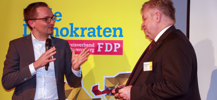 Im Rahmen der Veranstaltung ehrte Benjamin Strasser als FDP-Kreisvorsitzender zudem besonders verdiente Mitglieder. Bernd Großmann, welcher bis zuletzt lange Jahre Ortsvorsitzender in Weingarten war und über 40 Jahre in der Freien Demokratischen Partei engagiert ist, sowie Heidi Gairing aus Ravensburg, die für ihr Engagement als Kreisschatzmeisterin und 50 Jahren Mitgliedschaft die goldene Theodor-Heuss-Medaille erhielt.