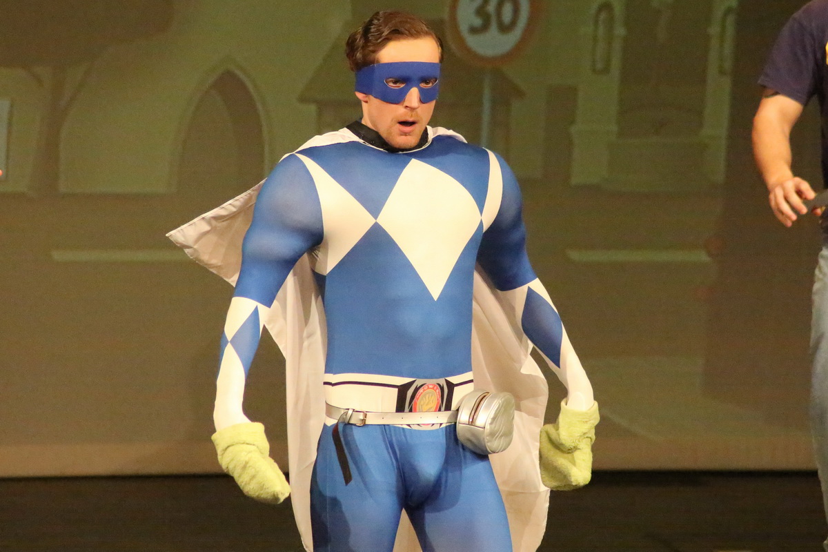 „Ravensburg im Heldenländle“ lautet der diesjährige Slogan der Milka-Kampagne und einen kleinen Vorgeschmack, was die Besucher der fünf Aufführungstermine so zu erwarten hatten, offenbarte ein Videotrailer schon einige Wochen zuvor. Der in den unendlichen Weiten des Internets rasant verbreitete Clip ließ vor allem eine Frage offen: Wer steckt hinter der Maske von Captain Ravensburg im blau-weiß-karierten Superhelden-Kostüm? Natürlich soll dieser Bericht nicht „zuuuuuuuu“ viel verraten. Schließlich gibt es noch drei weitere Vorführungen und die Spannung soll ja ein bisschen aufrechterhalten werden.