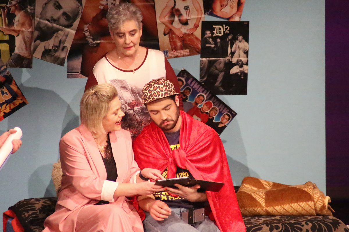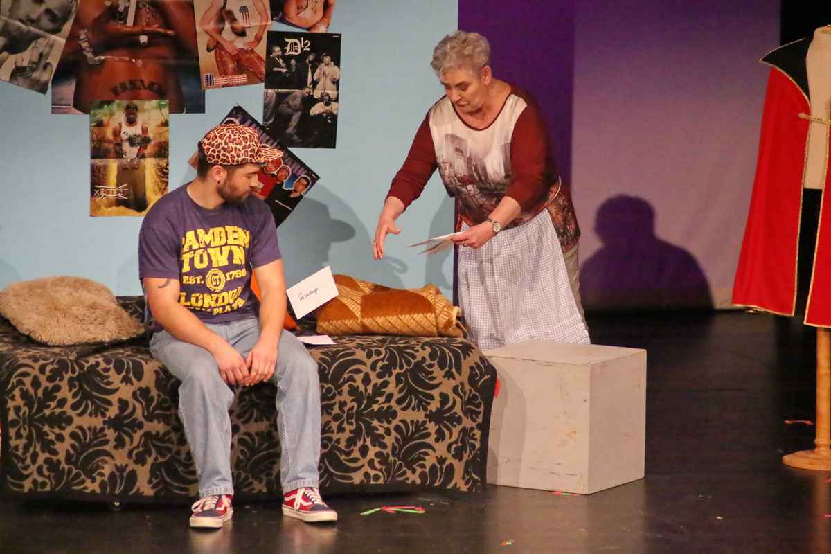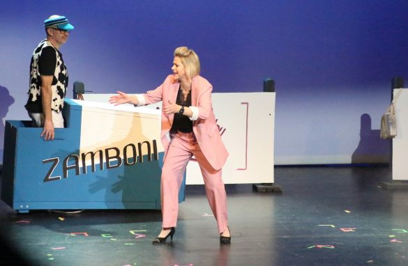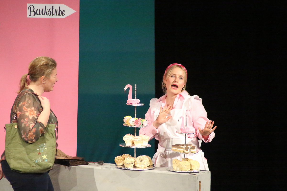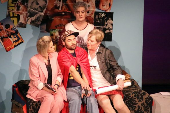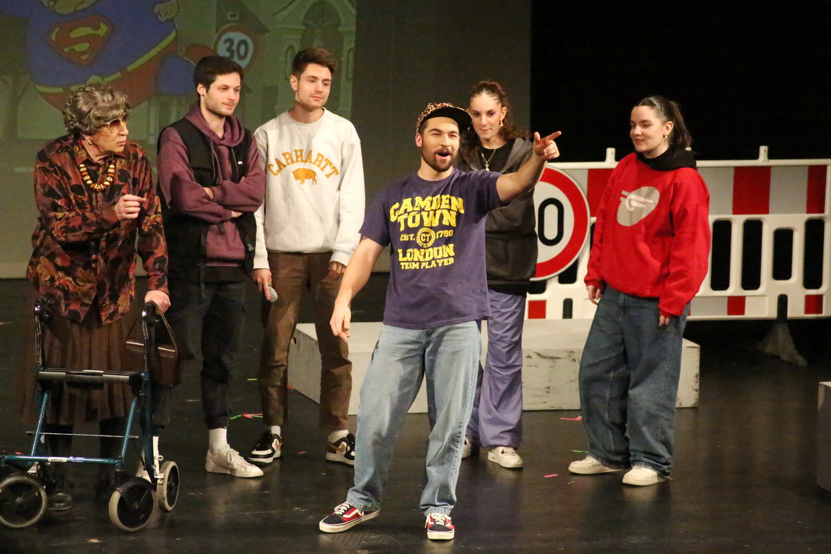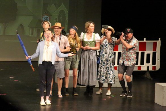 Wie jede Superhelden-Geschichte hat die Milka-Auflage so den einen oder anderen Nebenschauplatz – bei dem sich die erwartungsfrohen Konzerthaus-Besucher eine Lachmuskel-Entzündung einhandelten. Wäre da zum Beispiel der gnadenlose Überbietungskampf um vermeintliche Fachkräfte. Weder Lisbeth und Siegfried Kreidler von der gleichnamigen Schreinerei (gespielt von Brigitte Pfaff und Christoph Stehle) noch Marry Vetter – die äußerst adrette und englisch-sprach-gewandte Personal-Rekruterin eines ortsansässigen Pharmaunternehmens (gespielt von Daniela Engelberger) – können Möchtegern-Influencer Jason Bächle nicht einmal mit einer 8-Stunden-Woche und Monstergehalt vom Sofa locken.