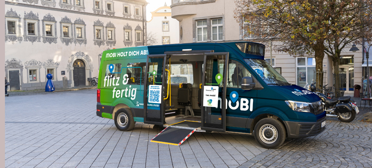 MOBI verkehrt für drei Jahre als Pilotversuch im Gebiet der Ravensburger Altstadt, Bahnhof, Marienplatz, Museen bis hin zum Krankenhaus. Das Besondere an MOBI, er fährt ohne festen Fahrplan, ohne feste Routen und feste Haltestellen. Denn MOBI fährt nach Bedarf flexibel und soll die Bürgerinnen und Bürger auch dorthin bringen, wo große Linienbusse derzeit nicht verkehren können.