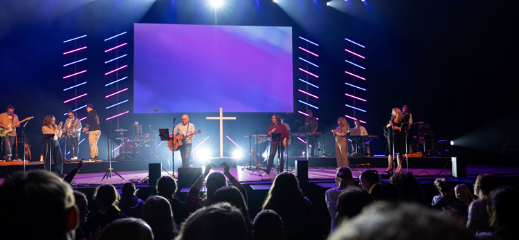 Rund 1.700 Christen aus verschiedenen christlichen Gemeinden feiern am 8. November gemeinsam in der Ravensburger Oberschwabenhalle. Die Besucher des Lobpreiskonzerts kommen aus allen Generationen und aus der gesamten Region Bodensee-Oberschwaben-Allgäu. Bild: Gemeinschaft Immanuel