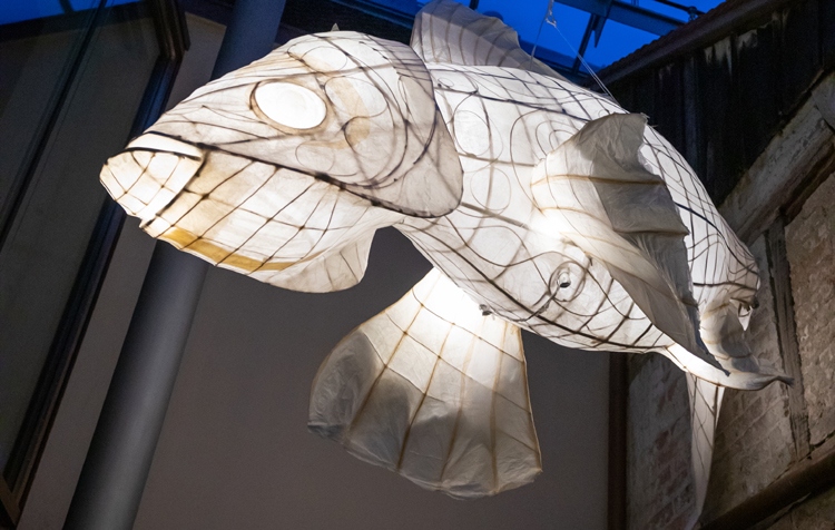 Nach dem furiosen ersten Lichterfest des Kapuziner Kreativzentrums im Februar war für das Kulturamt Ravensburg schnell klar, dass man selbst eine Patenschaft für eine der Lichterfest-Figuren übernehmen möchte. Die Wahl fiel auf die erste aller entstandenen Großfiguren; Einem 4 Meter langer Bodenseekarpfen. Dieser wurde in unzähligen Stunden von Ravensburger Kreativschaffenden gemeinsam mit der Künstlerin Sue Walpole gebaut, die extra für das Projekt aus England angereist ist. Die leuchtende Großfigur kann ab sofort im Innenhof des Museum Humpis Quartier bewundert werden.