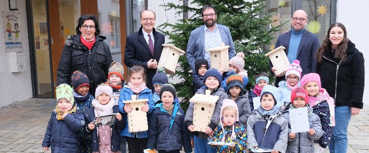 Jede Kindertagesstätte und jeder Kindergarten im Landkreis Ravensburg erhält 4 kostenlose Bausätze für Vogelnistkästen. Die Nistkästen aus Fichtenholz stammen aus dem Schwarzwald. Verpackt wurden sie durch die Mitarbeiterinnen und Mitarbeiter der St. Elisabeth Stiftung, Heggbacher Werkstattverbund in Biberach.