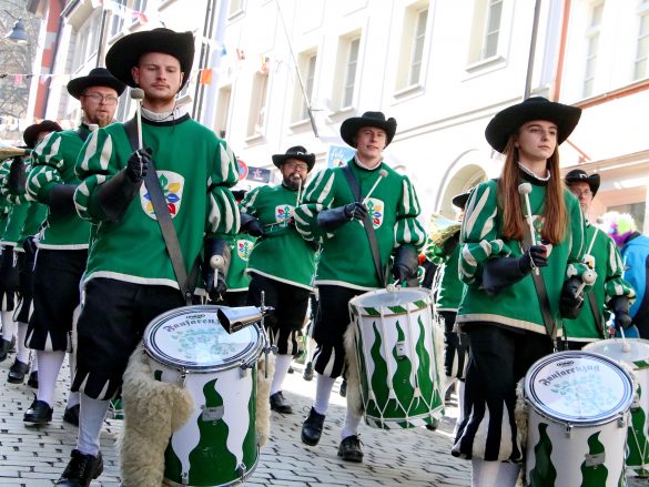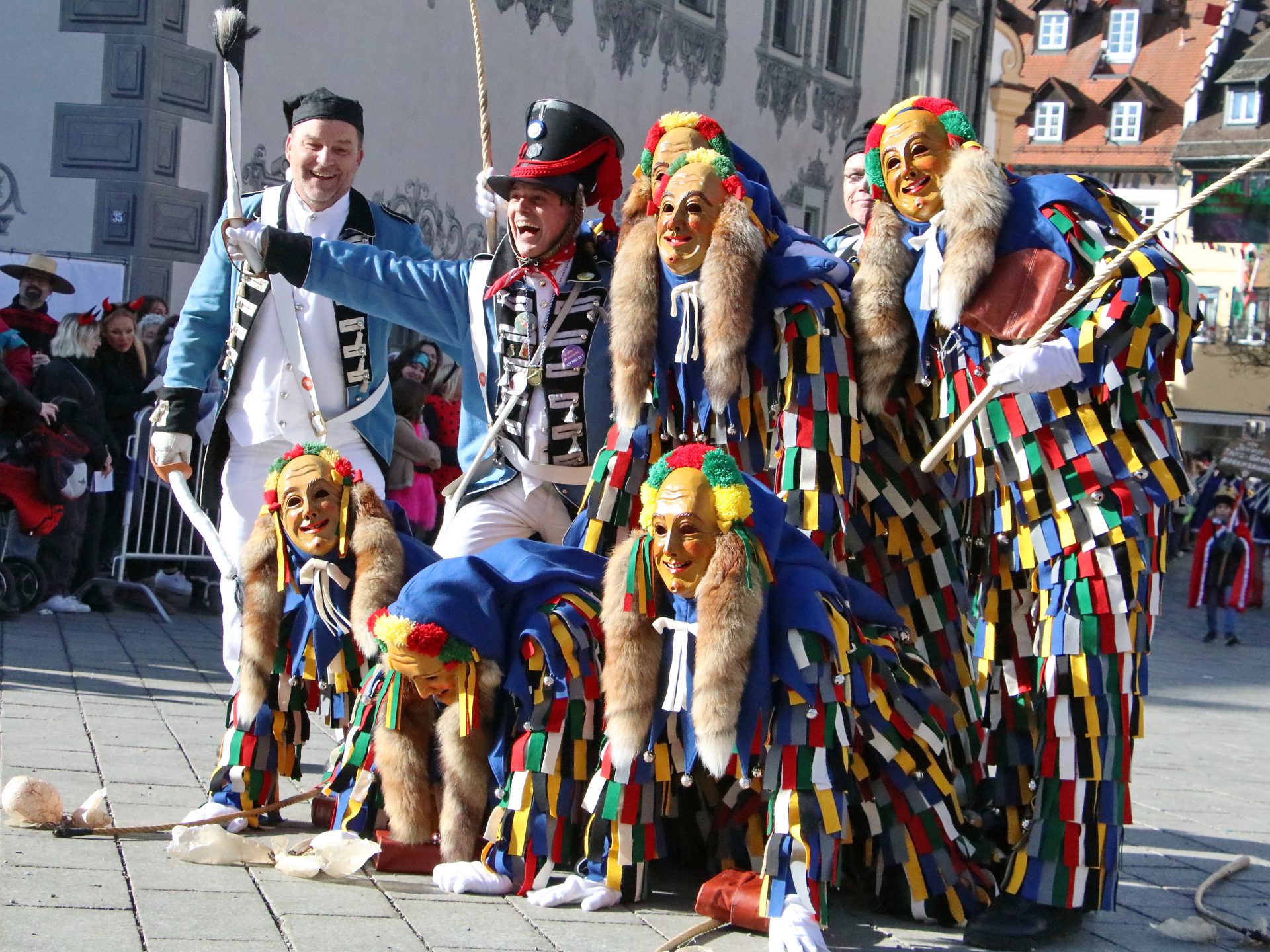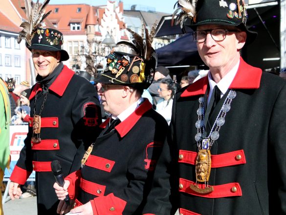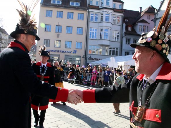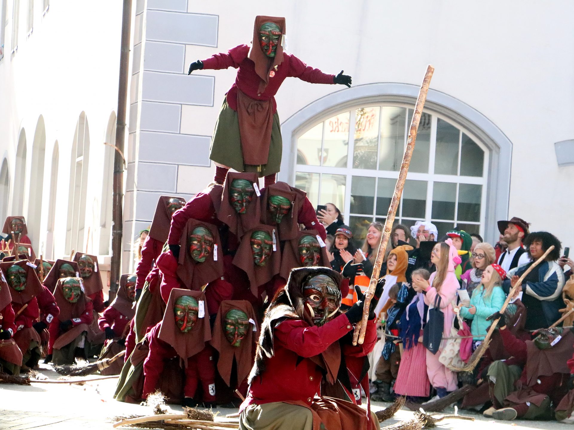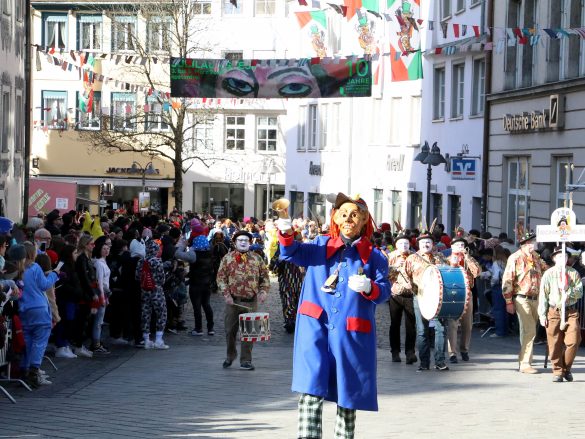 Vor Tausenden von Fasnetsbegeisterten zog sich am Rosenmontag der Narrensprung durch die Ravensburger Innenstadt. 52 Narrenzünfte sorgten für ein farbenfrohes Spektakel und boten einen würdigen Abriss der  schwäbisch-allemannischen Fasnetstradition.