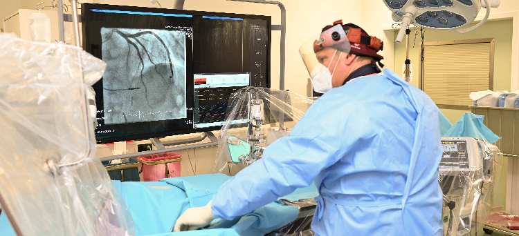 Eine davon, die Siemens Artis Icono, ist aktuell schon am Interimsstandort der Abteilung im Untergeschoss im Einsatz. „In den Räumen der ehemaligen Notaufnahme betreiben wir zwei Herzkatheterlabore und stellen so auch in der Umbauphase eine 24-Stunden-Versorgung sicher – für den kompletten Landkreis, aber auch überregional“, erklärt der leitende Oberarzt Dr. Stephan Dworzak.