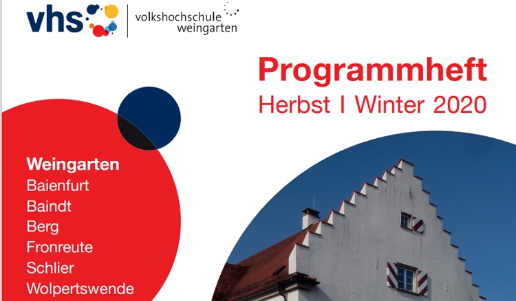 Weingarten – Seit gestern liegt es in Weingarten aus und ist selbstverständlich auch online verfügbar: Die Volkshochschule Weingarten hat ihr Winterprogramm mit vielen neuen und interessanten Angeboten veröffentlicht. Über 350 Veranstaltungen sind für den Zeitraum vom 21. September bis 31. Januar 2021 geplant, rund 50 Angebote wurden erstmalig ins Programm mit aufgenommen.