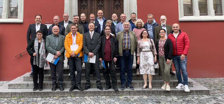 Oberbürgermeister Dr. Daniel Rapp hat am Mittwoch, 16. Oktober im Rathaus 22 Jubilare aus sechs verschiedenen Unternehmen in Ravensburg für ihre langjährige Betriebszugehörigkeit geehrt. Stellvertretend für den Ministerpräsidenten Winfried Kretschmann über-reichte der Oberbürgermeister seinen Gästen bei einem Empfang Ehrenurkunden des Landes Baden-Württemberg als Dank und Anerkennung für ihre jahrzehntelange Treue.