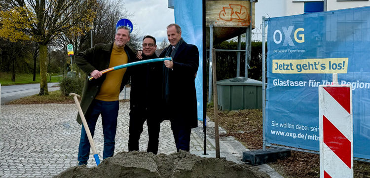 In Ravensburg rollen nun die Bagger: OXG hat mit dem Ausbau der zukunftssicheren Glasfaserinfrastruktur begonnen. Das neue Netz wird mehr als 10.000 Haushalte mit Glasfaser versorgen. Damit begleitet OXG die Stadt Ravensburg in Richtung digitale Zukunft. Markus Metzger, Leiter Kommunenmanagement von OXG: „Vor einigen Wochen haben wir den Glasfaserbaustart in Weingarten gefeiert – heute setzen wir den Startschuss für mehr als 10.000 Ravensburger Haushalte. Durch diesen Ausbau machen wir gemeinsam einen bedeutenden Schritt in Richtung einer digital vernetzten und zukunftsorientierten Gesellschaft. Anwohner*innen sollten die Gelegenheit nutzen, sich bereits während der Bauphase kostenlos an das offene Glasfasernetz anschließen zu lassen.“ Oberbürgermeister Dr. Daniel Rapp freut sich, dass der Ausbau vorankommt. „Schnelles Internet ist für alle Lebensbereiche inzwischen unverzichtbar. Ich freue mich, dass es in Ravensburg weiter vorangeht. OXG ist hier ein wichtiger Partner.“
