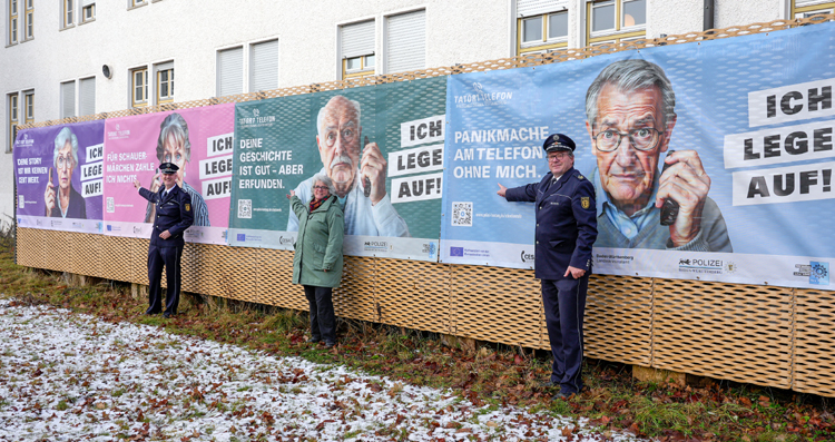 Diese besonders niederträchtige Kriminalitätsform führt oft zu psychisch erheblich belasteten Opfern, die angerichteten Vermögensschäden summieren sich auf mehrere Millionen Euro. Die verschiedenen Varianten wie der sogenannte Enkeltrick, falsche Polizeibeamte oder Schockanrufe beschäftigen die Sicherheitsbehörden deutschlandweit, in Baden-Württemberg und auch in unserer Region stark. Zu Beginn des neuen Jahres startet das Polizeipräsidium Ravensburg zusammen mit den Landkreisen Ravensburg, Sigmaringen und dem Bodenseekreis, den jeweiligen Sportkreisen und weiteren Partnern daher eine neue Präventionskampagne. Hierbei werden präsidiumsweit im öffentlichen Raum und im Bereich von Sportstätten sogenannte Bauzaun-Banner aufgestellt, die auf die verschiedenen Betrugsarten am Telefon aufmerksam machen und klare Verhaltenshinweise geben. Die Banner werden dabei vorzugsweise an stark frequentierten Orten platziert, um von möglichst vielen Menschen wahrgenommen zu werden.