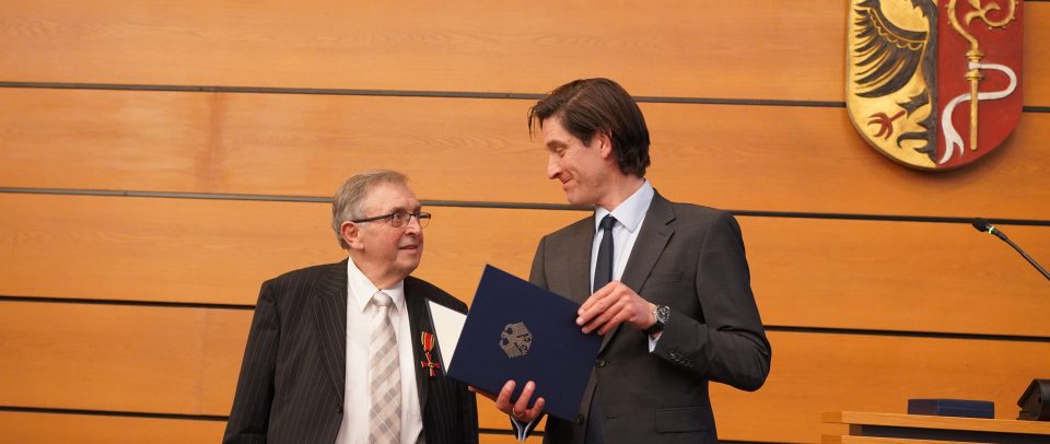 „Sie, lieber Herr Dr. Siegel haben sich Verdienste in diesen drei Bereichen erworben“, führte Landrat Mario Glaser aus. „Und Sie erhalten den Verdienstorden für Ihr umfangreiches und beeindruckendes Lebenswerk, das durchweg auf ehrenamtlicher Tätigkeit gründet. Es ist vor allem getragen von einer hohen demokratischen Gesinnung, die davon überzeugt ist, dass jede und jeder nach eigenen Möglichkeiten und Fähigkeiten zum Gemeinwohl beitragen kann und sollte.“