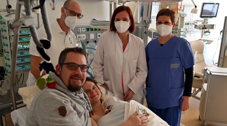 „Unser Ziel war es, die Schwangerschaftsdauer zu verlängern und zumindest das Jahr 2022 zu erreichen. Das haben wir geschafft, das Kind ist in einem sehr guten Zustand“, freute sich Dr. Martina Gropp-Meier, Chefärztin der Frauenklinik am EK. Auch der Vater war glücklich nach der knapp vierstündigen Geburt, die mit Hilfe von Oberarzt Dr. Marius Raiber, Hebamme Annett Merkel und Kinderärztin Dr. Franziska Sonntag ohne Komplikationen verlief: „Es war auch das perfekte Timing. Durch die neuen Corona-Vorschriften hätte ich meine Frau ja von Neujahr an zunächst nicht mehr besuchen dürfen bis zur Geburt, die rein theoretisch nach dem Stichtag erst in fünf Wochen gewesen wäre, aber jetzt ist das weiterhin möglich“, sagte Benjamin Hug und schmunzelte. „Das haben die beiden sehr gut hinbekommen, vielleicht, weil ich so brav war und mich immer an die Besuchszeiten gehalten habe.“