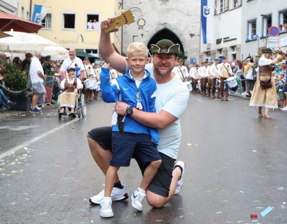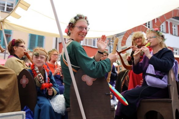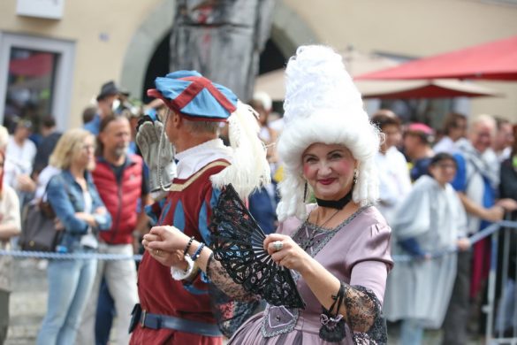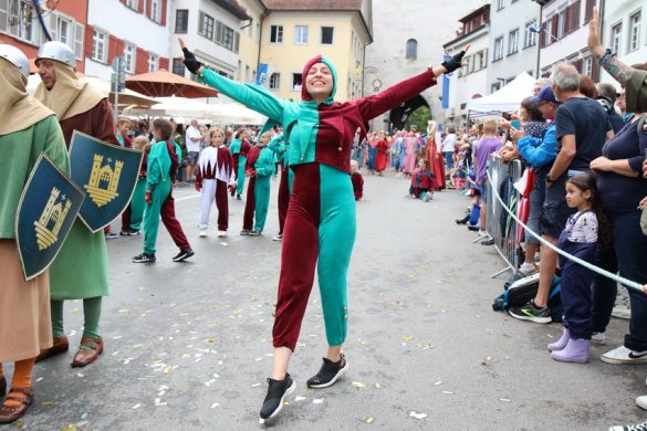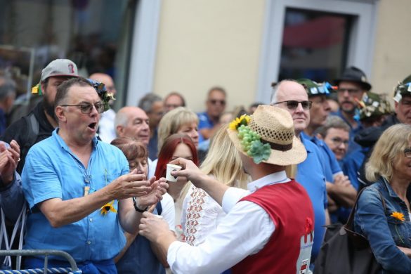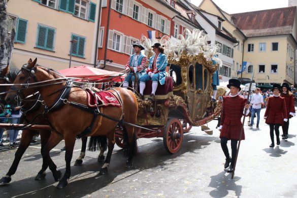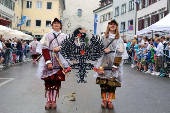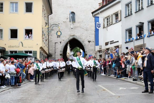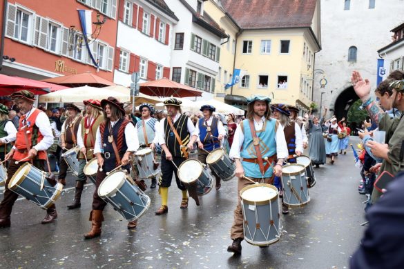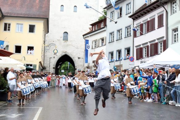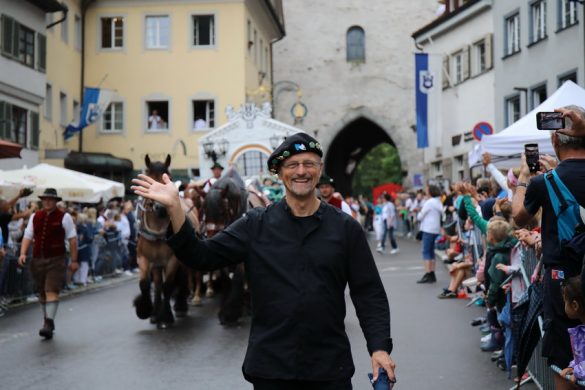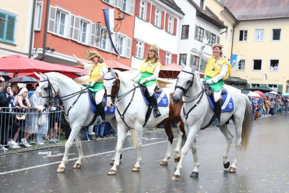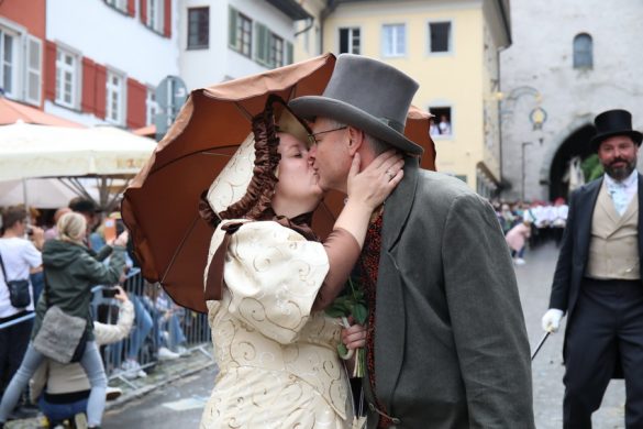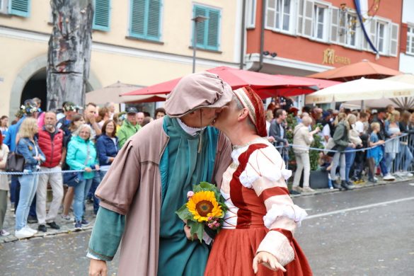 Lange wurde aufgrund der wenig erquicklichen Wetterprognosen hinter den Kulissen der Rutenfestkommission gebangt und beraten, dann gab es „grünes Licht“. Zwar startete der rund zweieinhalbstündige Abriss der Ravensburger Stadtgeschichte mit 15-minütiger Verzögerung, doch bei all dem Jubel, Beifall und dem einen oder anderen Kuss war dies ganz schnell vergessen.