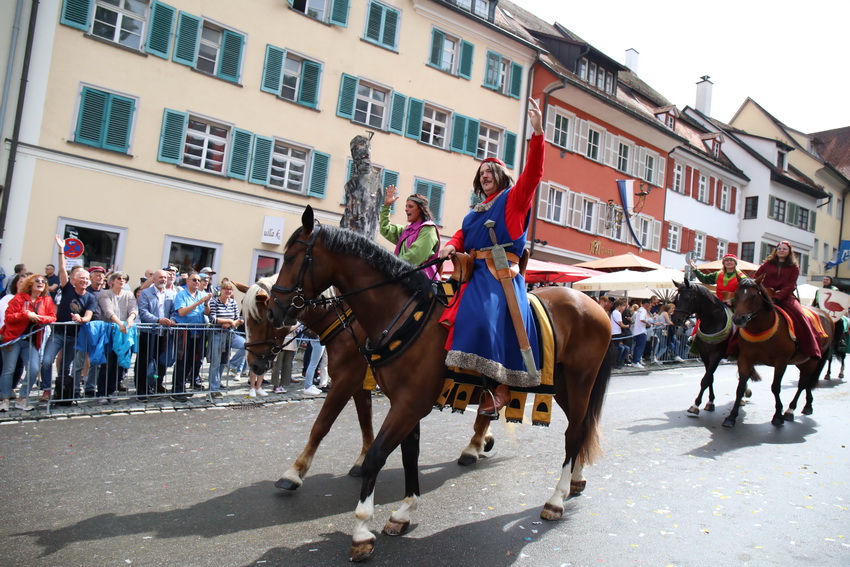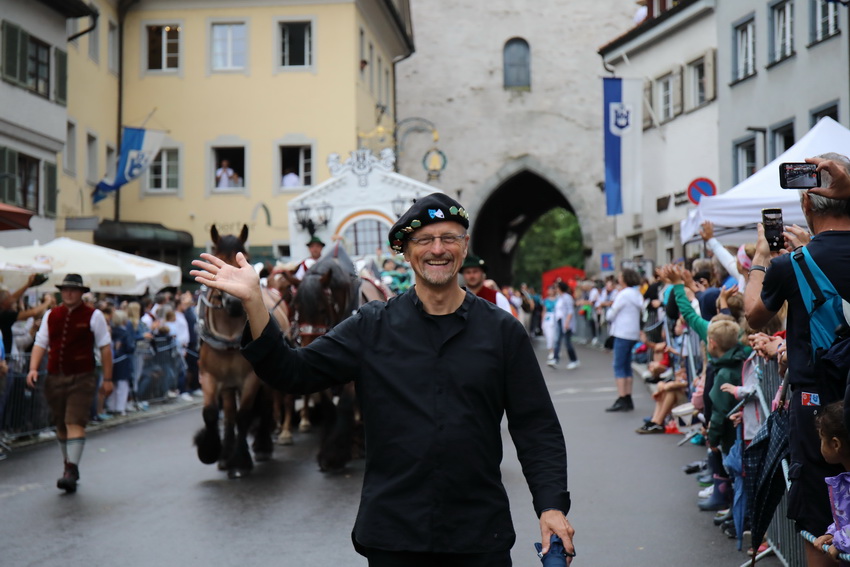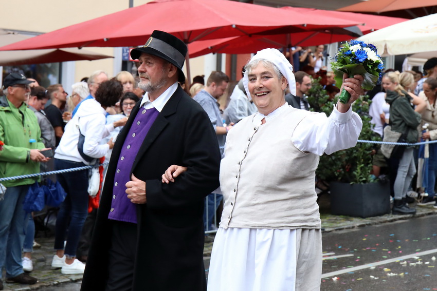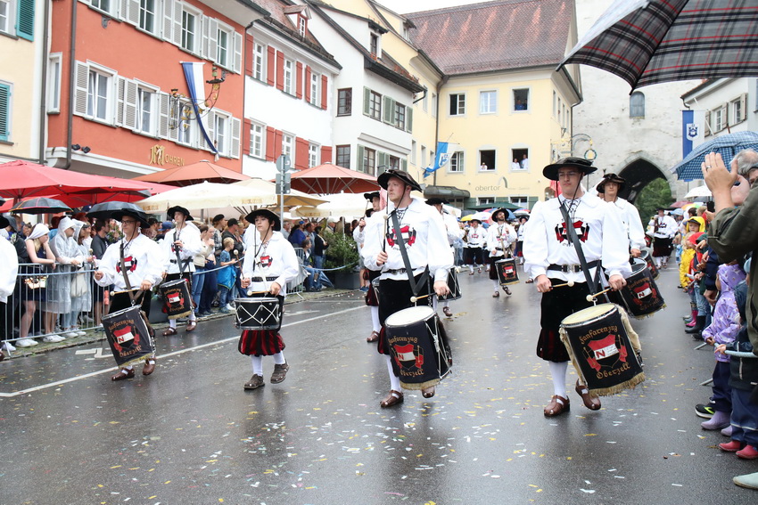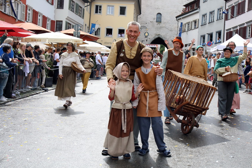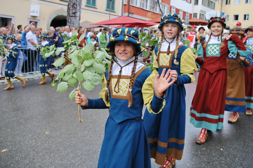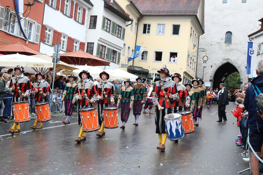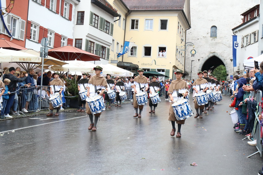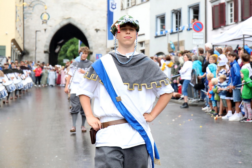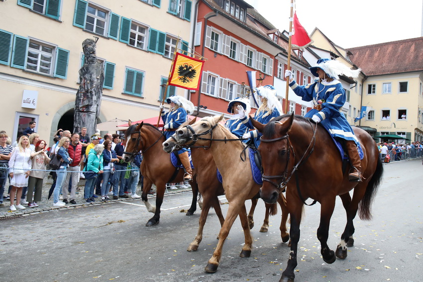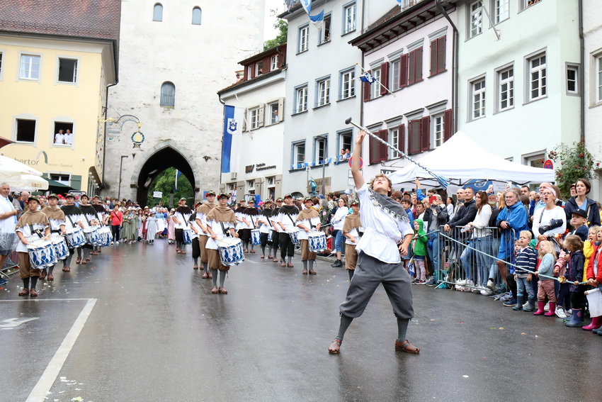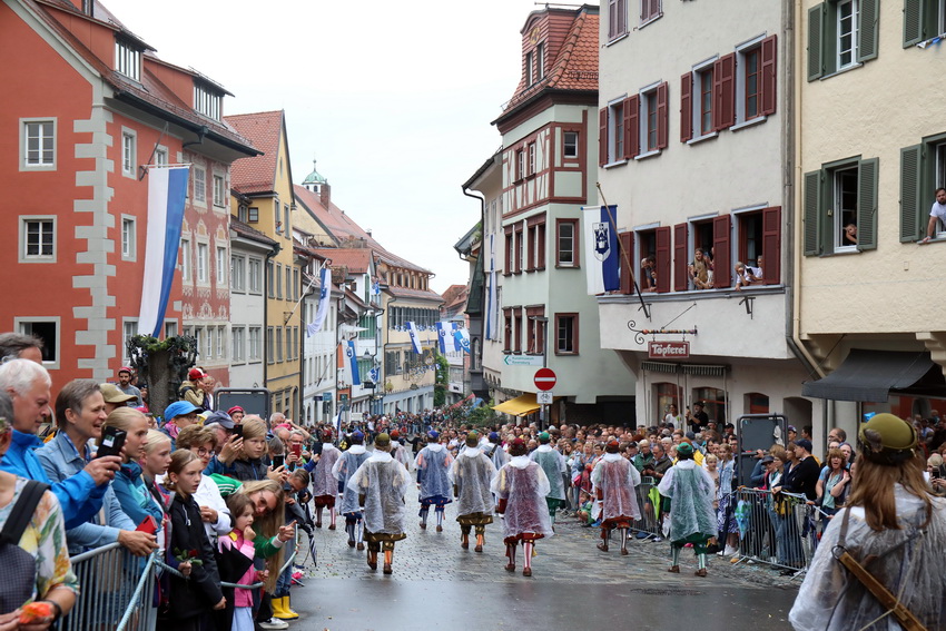 Lange wurde aufgrund der wenig erquicklichen Wetterprognosen hinter den Kulissen der Rutenfestkommission gebangt und beraten, dann gab es „grünes Licht“. Zwar startete der rund zweieinhalbstündige Abriss der Ravensburger Stadtgeschichte mit 15-minütiger Verzögerung, doch bei all dem Jubel, Beifall und dem einen oder anderen Kuss war dies ganz schnell vergessen.