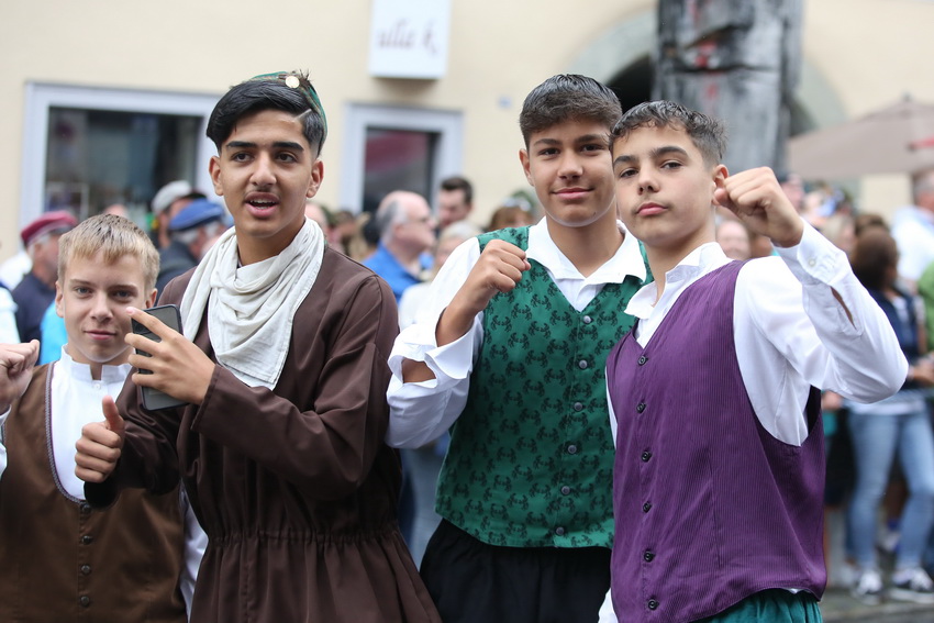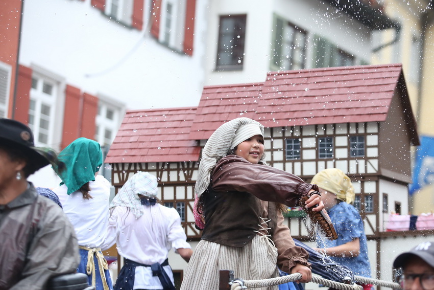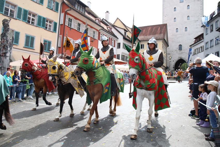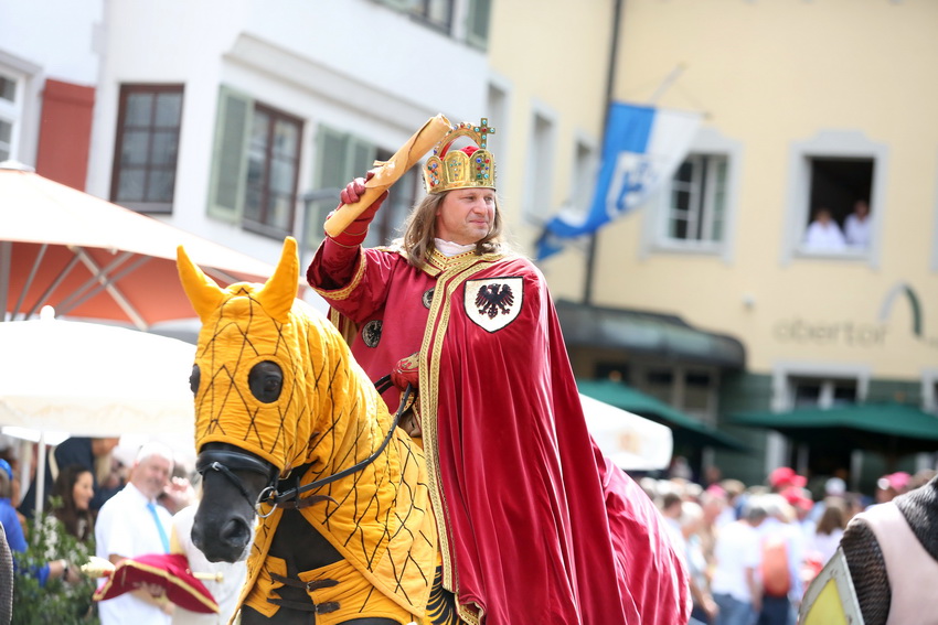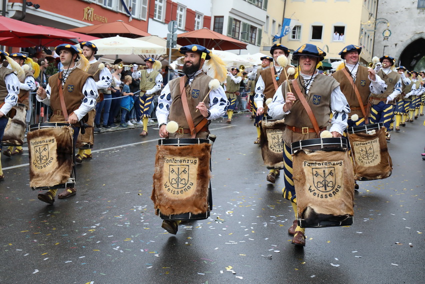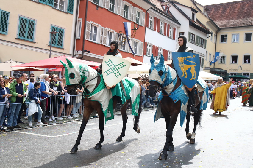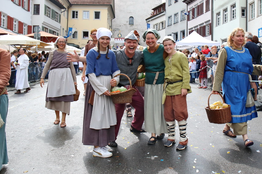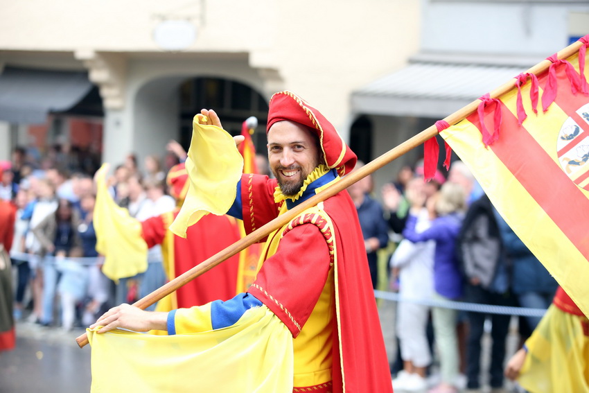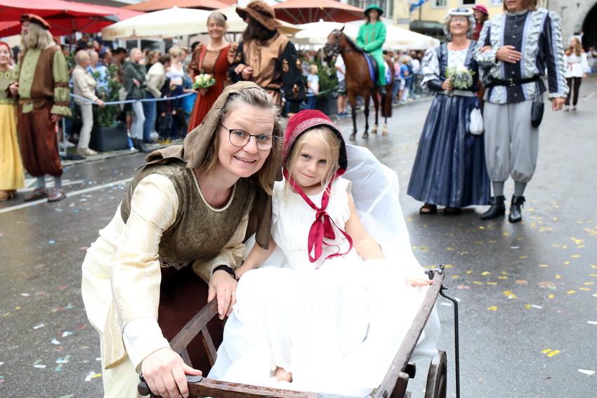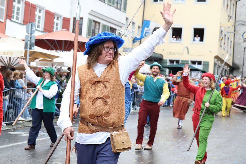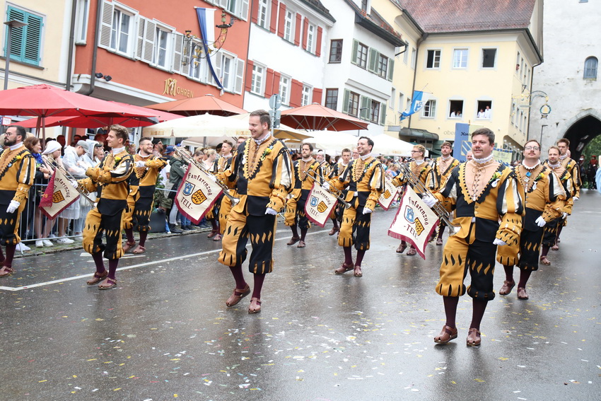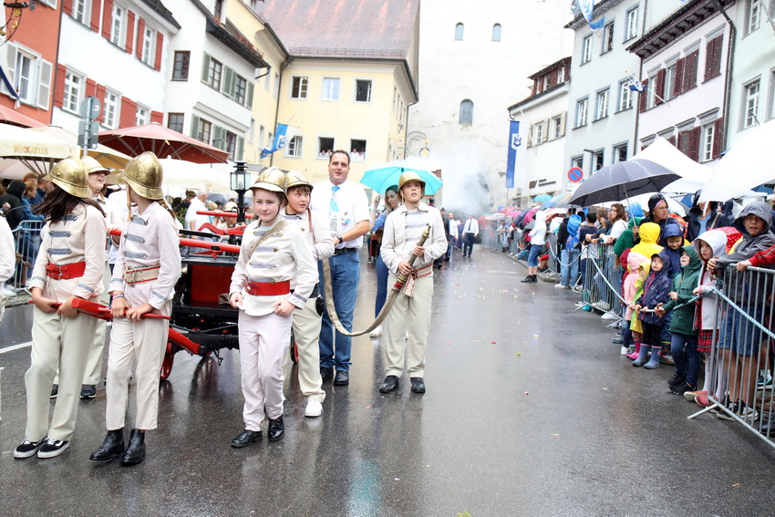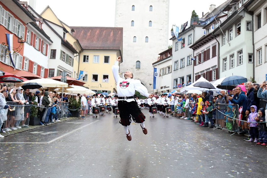 Lange wurde aufgrund der wenig erquicklichen Wetterprognosen hinter den Kulissen der Rutenfestkommission gebangt und beraten, dann gab es „grünes Licht“. Zwar startete der rund zweieinhalbstündige Abriss der Ravensburger Stadtgeschichte mit 15-minütiger Verzögerung, doch bei all dem Jubel, Beifall und dem einen oder anderen Kuss war dies ganz schnell vergessen.