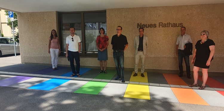 Am Neuen Rathaus in Ravensburg wurde der Bodenbelag vor dem Haupteingang mit Folien in den Regenbogenfarben neu gestaltet. Zudem wurde dort vorübergehend eine Regenbogenfahne gehisst.