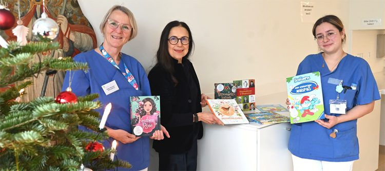 Die Bücher kommen im Klinikalltag dringend zum Einsatz. „Wir haben einen hohen Durchlauf an Kindern. Viele Bücher in den Schränken zerfleddern mit der Zeit, auch durch das regelmäßige Desinfizieren“, erklärt Regina Borsutzky. „Außerdem suchen wir immer wieder kleine Geschenke, etwa zu Geburtstagen. Wir sind sehr froh, wenn Kinder zum Buch greifen und nicht nur zum Tablet. Und auch die Kinder sind dankbar für diese Auswahl.“ Besonders freut sich das Team darüber, dass die Spende keine einmalige Aktion bleiben soll. „Wir möchten das etablieren und möglichst immer wieder an das Klinikum spenden“, kündigt Bettina Gretter an.