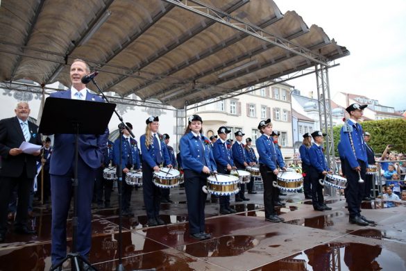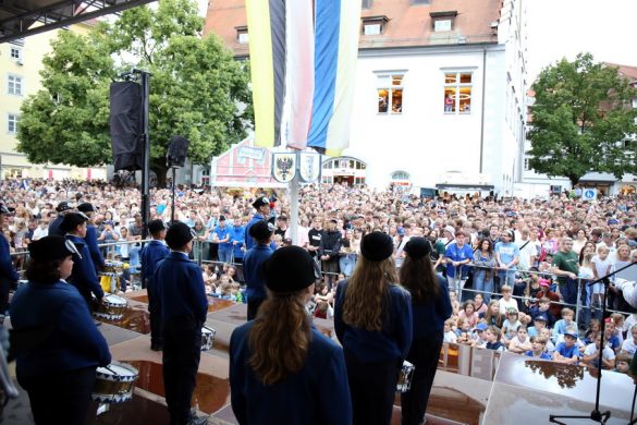 Mit dem Antrommeln der Trommlergruppen wurde am heutigen Freitag (21.Juli) das Ravensburger Rutenfest 2023 offiziell eröffnet. Wie schon in den Vorjahren kamen wieder Tausende von Rutenfestfreunden auf den Marienplatz und die ließen sich auch nicht davon abhalten, dass es während den Darbietungen der Trommler teils heftig regnete. Als am Ende der rund 80-minütigen Eröffnung wieder die Sonne über die Dächer der Ravensburger Altstadt blinzelte, war der zwischenzeitliche Wetter-Durchhänger ohnehin vergessen.