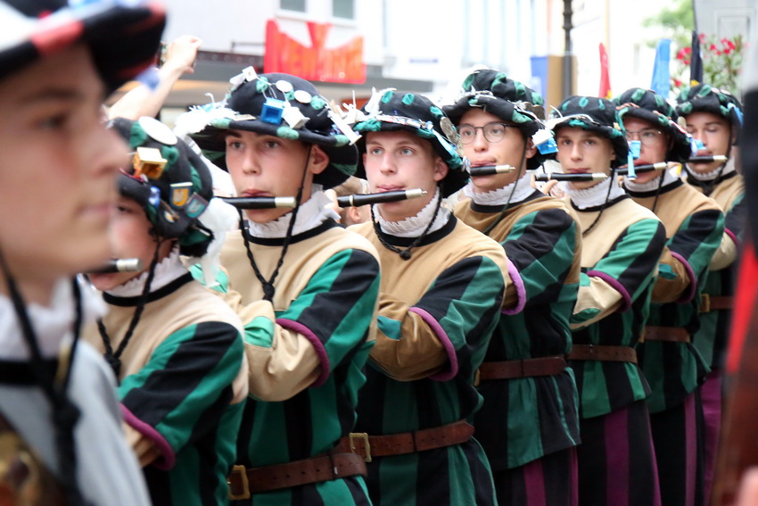 Am Samstag gilt das Antrommeln der Trommlergruppen und Fanfarenzüge in der Bachstraße, das Wappenschießen der Haupt-, Werkreal- und Gesamtschulen sowie der Frohe Auftakt auf dem Marienplatz mit drei Bühnen als besondere Highlights des zweiten Rutenfesttages. Bitte vergessen Sie nicht, dass für den Einlass auf den Marienplatz ein aktuelles Festabzeichen als Eintritt erforderlich ist.