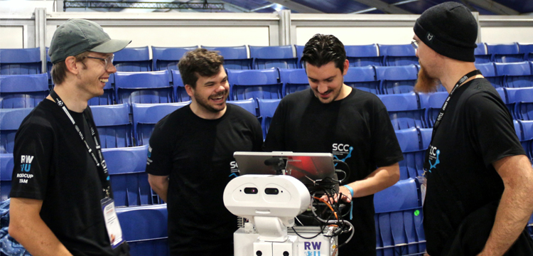 Die RWU überzeugte insbesondere zu Beginn des Wettbewerbs und hielt sich lange unter den Top Fünf, auch vor einigen favorisierten Teams des RoboCups. Am Ende landete das Team, dass sich selbst den Namen „Serious Cybernetics Corporation“ gegeben hat, auf dem achten Platz. Insgesamt waren in der @Home-Liga 17 Teams an den Start gegangen, darunter Universitäten und Hochschulen aus Brasilien, Japan und Mexiko. Trotz unterschiedlicher Kulturen und Herkünfte einte die Teilnehmer der Weltmeisterschaft einiges: Die Leidenschaft und Passion für Robotik, die sich in Kabelsalaten, leeren Softdrink-Dosen und selbst mitgebrachten Küchenutensilien aller Teams widerspiegelte.