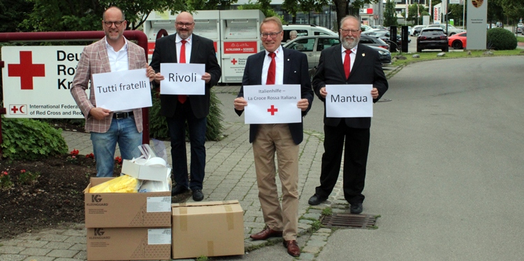 „Mit dem Geld wurde hochwertige persönliche Schutzausrüstung für die Freiwilligen des Italienischen Roten Kreuzes in unseren Partnerstädten Rivoli und Mantua für den Kampf gegen das Corona-Virus gekauft und jetzt per Kurierdienst versendet“ so die DRK-Vorsitzenden Alfred Bosch aus Ravensburg und Wolfgang Pfau aus Weingarten. Damit sind auch diese auf eine 2. Welle im Kampf gegen das Coronavirus bestmöglich geschützt.