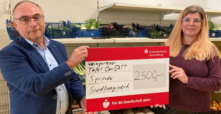 WEINGARTEN – Der Weingartener Tafelladen CariSATT freut sich über die Spende von 2.500 Euro vom Siedlungswerk, dem Wohnungs- und Städtebau Unternehmen aus Stuttgart.