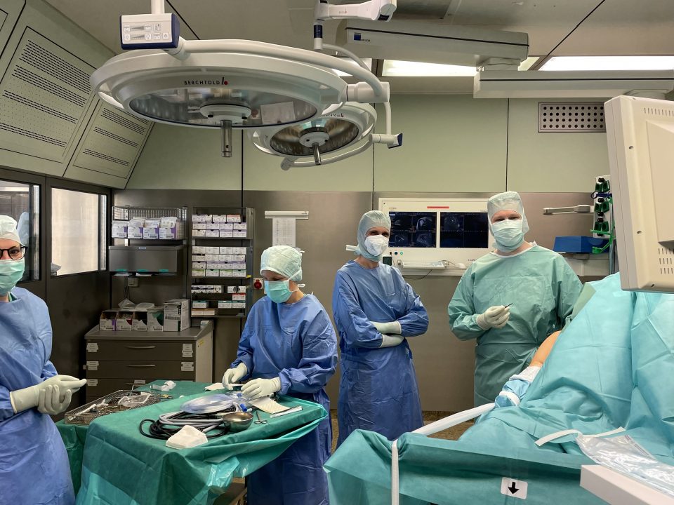 Die Ärzte aus der Sportklinik Ravensburg haben mit den Operationen am Westallgäu-Klinikum in Wangen begonnen. Den ersten Eingriff, eine Schulteroperation, hat Prof. Dr. Gunther Sandmann (rechts) vorgenommen. Die Operation konnte pünktlich beginnen und verlief reibungslos.