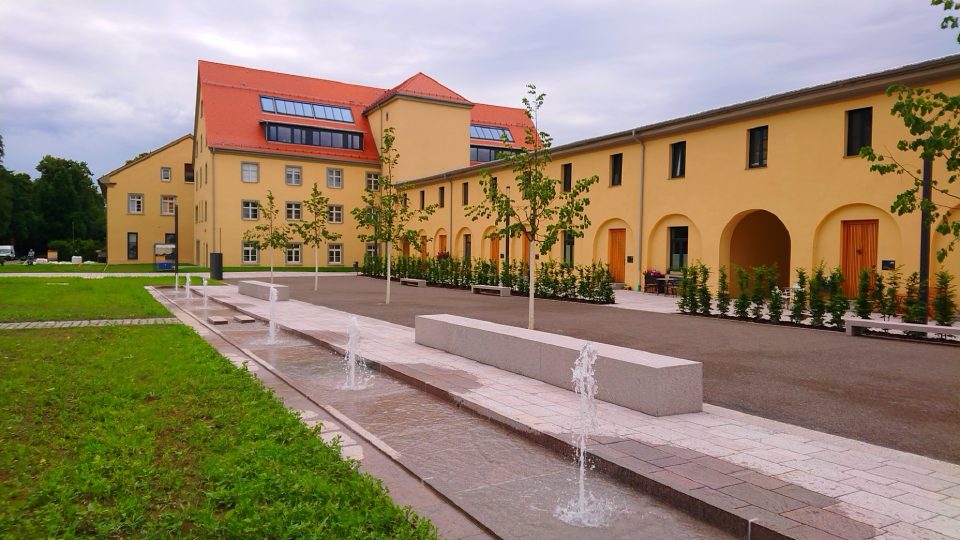 Und nicht nur das. Es entsteht auch ein attraktives Umfeld um die Wohnungen herum. Die direkte Nachbarschaft zur imposanten Klosterkirche und dem Konventgebäude ist eine Besonderheit. Dies wird noch unterstrichen durch die Neugestaltung des Platzes zwischen Klosterkirche und den neuen Wohnungen. Die Fläche wird überhaupt erst wieder mehr als Platz wahrgenommen. Es ist eine attraktive Fläche mit viel Grün entstanden. Schattenbäume, Insektenwiesen, ein imposantes Wasserspiel und Sitzbänke – perfekt abgestimmt, um sich der Klimaentwicklung anzupassen und ihr entgegenzuwirken. Viel Schatten und Wasser sorgt für Abkühlung. Dadurch entsteht eine angenehme Aufenthaltsqualität. Die soll ausdrücklich nicht nur den Bewohnerinnen und Bewohnern im Umfeld zugutekommen. Der Platz ist für alle da, die eine kleine Auszeit vom Alltag möchten.