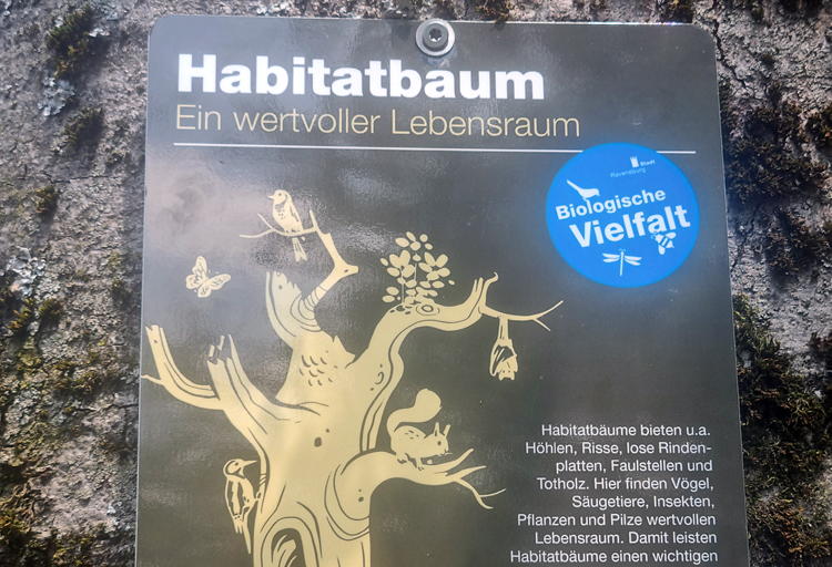 Derzeit werden einige Bäume im Stadtbild als „Habitatbäume“ beschildert, um auf ihren wichtigen Beitrag als natürlicher Lebensraum für Tiere und Pflanzen hinzuweisen.