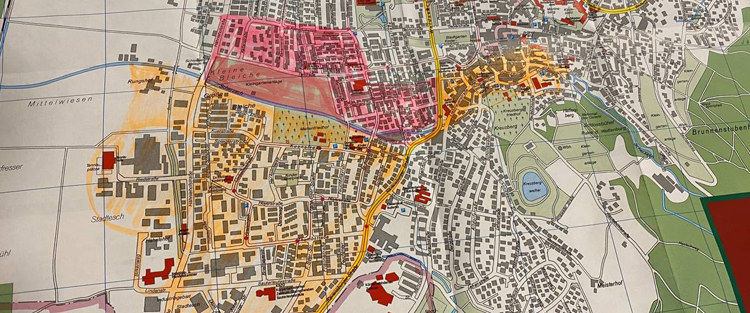Die Hochwasser-Lage mit den Gefährdungen auf der Stadtkarte. Bild: Stadt Weingarten