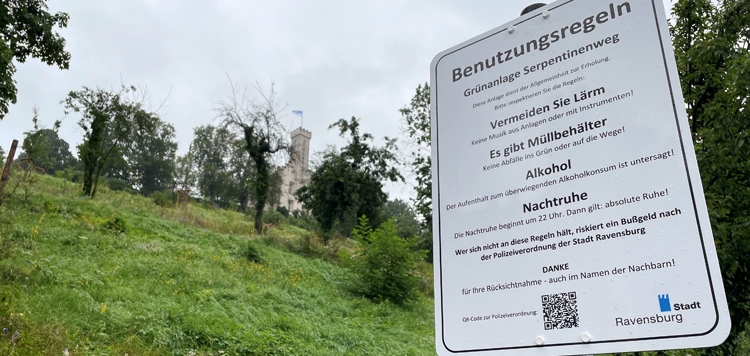 Gerade an den Wochenenden und vor Feiertagen gibt es einen höheren Besucherzustrom in die Ravensburger Innenstadt. Hier ist wichtig, dass bestimmte Regeln des Zusammenlebens beachtet werden. Die Stadt Ravensburg hat dazu ein privates Security-Unternehmen beauftragt. Zusammen mit dem Kommunalen Ordnungsdienst sind an den Abenden an Wochenenden und vor Feiertagen in der Altstadt, in den Grünanlagen um die Altstadt, auf dem Serpentinenweg und auf dem Mehlsack- und Veitsburgareal zwei Teams unterwegs. Der Einsatz ist bis Ende September befristet.