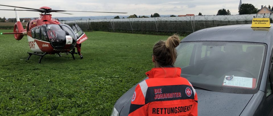 Die Johanniter Helfer-vor-Ort gemeinsam im Einsatz mit Rettungshubschrauber Christoph 45 aus Friedrichshafen. Bild: : Johanniter-Unfall-Hilfe