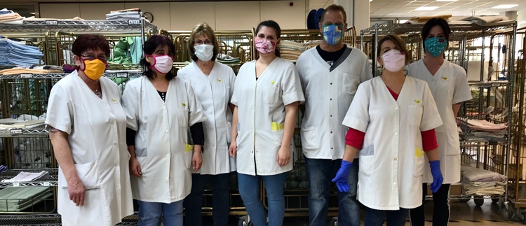 „Der Behelf-Mund-Nasen-Schutz kann die Verteilung von Tröpfchen in die Umgebung verringern und das Anfassen von Mund und Nase verhindern“, betont Projektleiterin Claudia Graßmann. „Eine Infektion verhindern, kann es dagegen nicht. Der gebotene Mindestabstand sollte, auch beim Tragen eines Mundschutzes unbedingt eingehalten werden.“ Aus Baumwolle und waschbar können so die Mitarbeitenden sich selbst und ihren Kolleginnen und Kollegen helfen.