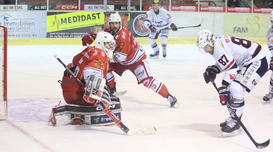 Die Towerstars, die neben Lukas Mühlbauer und Nick Latta kurzfristig auch auf den verletzten Matt Santos verzichten mussten, starteten dennoch selbstbewusst in die Partie. Schnell wurde allerdings klar, dass die personell angeschlagenen Eispiraten kompakt in der eigenen Zone stehen und das Tor von Keeper Oleg Shilin eisern verteidigen würden. Noch druckvoller agierten die Towerstars ab der 10. Spielminute. Trotz gleicher Spieleranzahl wirkten die Angriffe wie ein Powerplay. Es fehlte allerdings der „tödliche“ Pass vor das Tor. Mit Distanzschüssen bei meist freier Sicht war der Crimmitschauer Torhüter ebenfalls nicht aus der Reserve zu locken. Dass die Oberschwaben trotz ihrer spielerischen Vorteile kurz vor der ersten Pause einen Gegentreffer kassierten, passte irgendwie ins derzeitige Bild. Ein Schuss aus halblinker Position rutschte Towerstars-Keeper Ilya Sharipov ins lange Eck durch – das 0:1 war zugleich der Pausenstand.