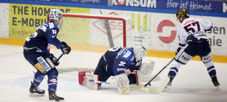 Ab der zweiten Hälfte des Startabschnitts hate Dresden mehr Druck.entwickelt. Richtig viel zu tun hatte Ilya Sharipov auch in der 17. Minute, als Denis Pfaffengut wegen eines Stockchecks zwei Strafminuten aufgebrummt bekam.Wieder komplett, hatten die Towerstars im Zeitraum bis zur ersten Pause ihre beste Phase. Die Scheibe lief flüssig durch die gegnerische Zone, mit den auf das Tor gebrachten Schüssen konnte Ex-Nationalkeeper Danny aus den Birken allerdings nicht in Verlegenheit gebracht werden.