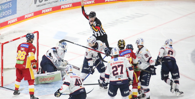 Trotz der siebeneinhalbstündigen Busreise hatten die Towerstars einen soliden Start ins Spiel, das allerdings auf beiden Seiten lange auf wirklich hochkarätige Möglichkeiten warten ließ. Die Abwehrreihen auf beiden Seiten arbeiteten konsequent vor dem eigenen Tor. Auch in der 8. Minute, als Luca Hauf wegen eines Hakens für zwei Minuten auf die Strafbank musste, ließen die Towerstars nicht allzu viel zu. Einen Schlüsselmoment erlebte das bis dahin ausgeglichene Spiel in der 16. Minute: Innerhalb kurzer Zeit öffnete sich die Strafbank gleich für zwei DEG-Akteure – für 1 Minute und 18 Sekunden stand somit eine doppelte Überzahl auf der Uhr. Die Towerstars-Überzahlformationen agierten allerdings viel zu verkrampft und bei den finalen Pässen zu durchsichtig. Die große Chance auf die Führung wurde so verpasst.